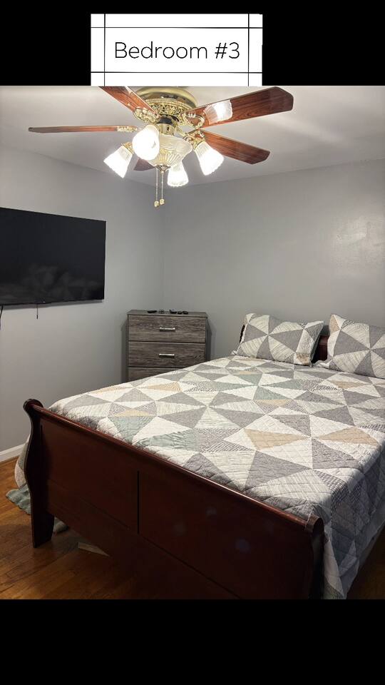 Welcome to this bright, spacious queen room just minutes from DC, National Harbor, MGM, and Tanger Outlets. Enjoy a private coded entry, shared access to 1.5 bathrooms, a gourmet kitchen, living room, den, and large fenced yard with a porch. Wood floors throughout and a cozy fireplace add charm. Free parking included. Book one room or multiple—great for solo travelers or groups. Enjoy natural light, and a location that blends quiet comfort with quick access to the best of the DMV.